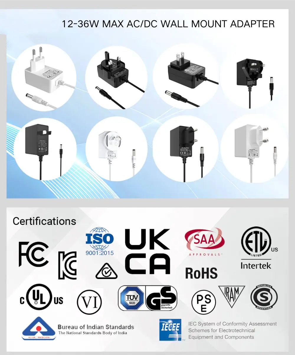 Його компактна конструкція, що вставляється, економить простір. Забезпечуючи стабільний і постійний вихідний адаптер живлення 12 Вт, він ідеально підходить для маршрутизаторів, мережевих комутаторів, світлодіодних стрічок та різних інших пристроїв.