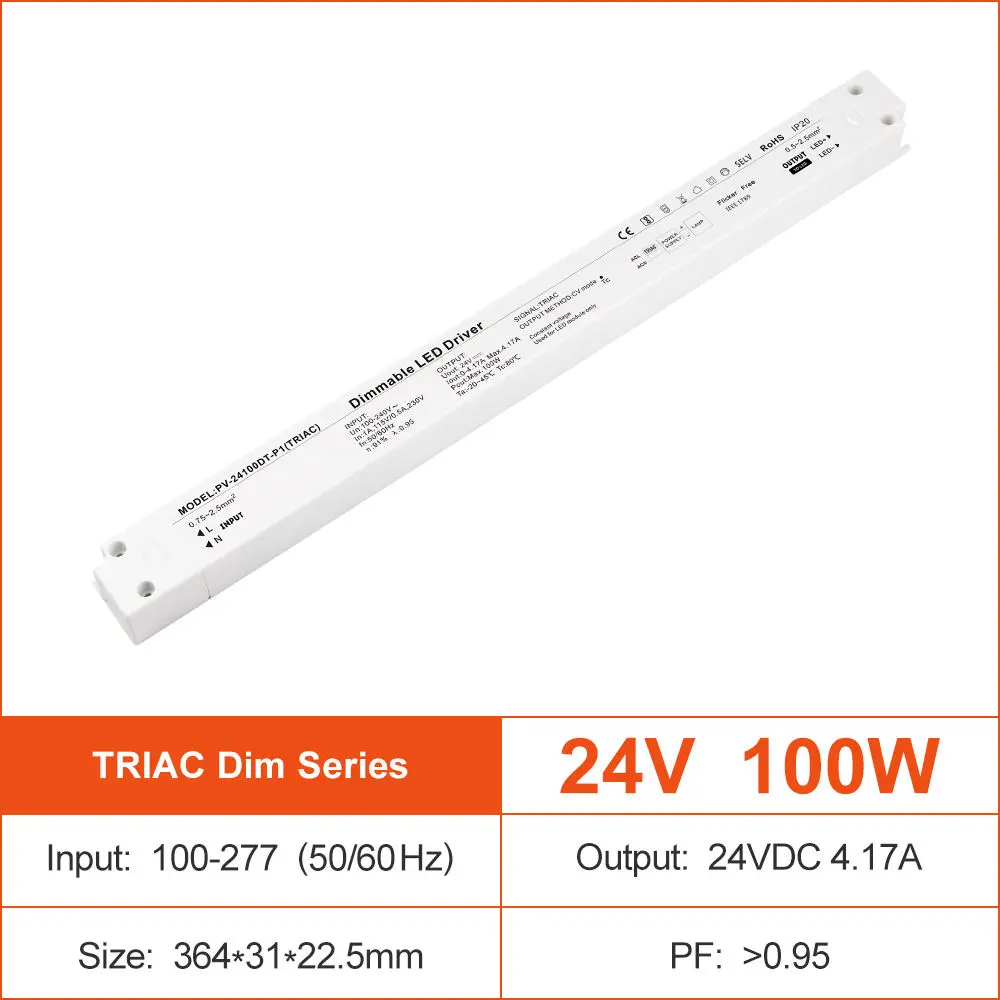 Покращена продуктивність для вимогливих програм Цей світлодіодний драйвер із регулюваною напругою 24 В розроблено відповідно до технічних характеристик. Він має універсальний вхід змінного струму (100-250 В), що забезпечує сумісність з електромережами в усьому світі. Завдяки високому ККД до 90% і корекції коефіцієнта потужності (PFC), що часто перевищує 0,95, він мінімізує витрати енергії та зменшує навантаження на вашу електричну систему. Основою його функціональності є передова технологія затемнення TRIAC (фазового зрізу), яка забезпечує плавне затемнення без мерехтіння від 0% до 100% у поєднанні зі стандартними настінними диммерами, створюючи ідеальну атмосферу. Для довговічності в різних середовищах він пропонується в корпусах від стандартного IP20 до міцного алюмінієвого корпусу з рейтингом IP67, який захищає від пилу та вологи як для внутрішнього, так і зовнішнього використання.
