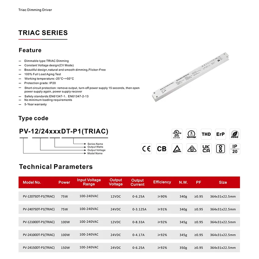 Високоякісний світлодіодний драйвер фабрики STARWELL на 12 В 24 В із постійною напругою та симистором із регулюванням яскравості розроблений для забезпечення стабільного високопродуктивного живлення для широкого спектру професійних і комерційних освітлювальних приладів. Доступний у різноманітному діапазоні потужності 20–150 Вт із вихідною напругою 12 В або 24 В постійного струму, цей драйвер плавно поєднує вдосконалене керування затемненням із високою надійністю.