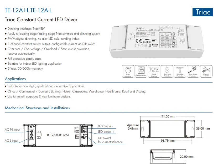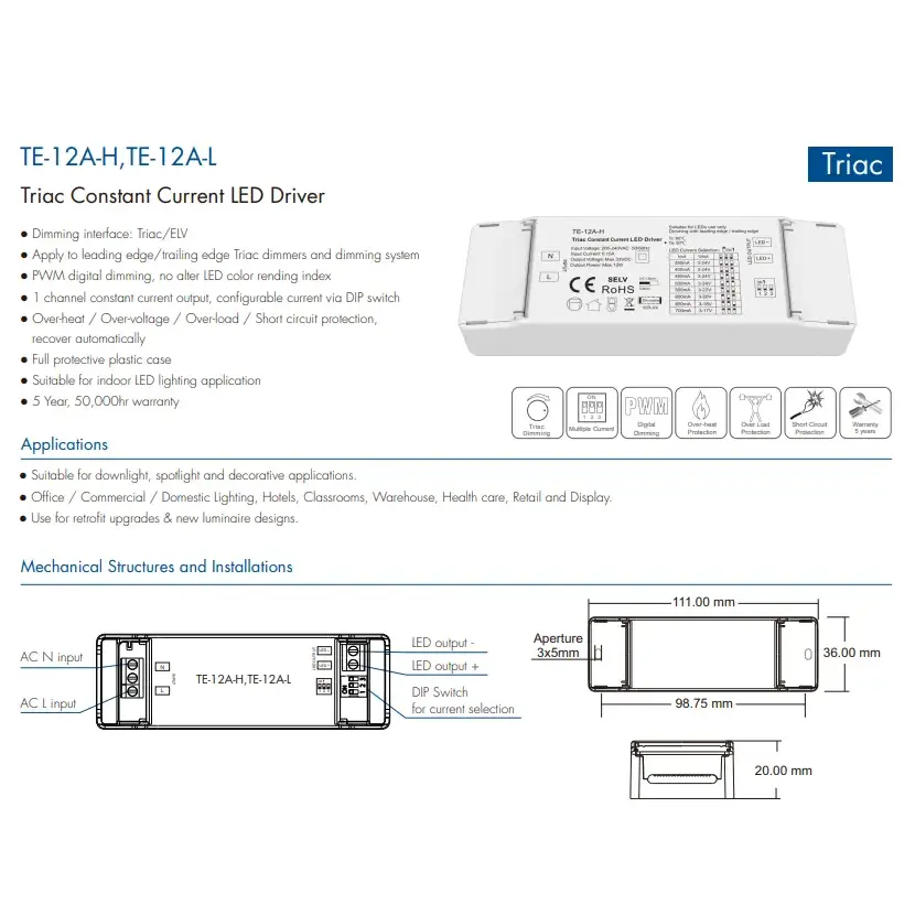 Високоякісний світлодіодний драйвер зі симистором зі постійним струмом Starwell потужністю 12 Вт інтегрує функції захисту від перенапруги, перевантаження по струму та короткого замикання, має високий коефіцієнт потужності та низький рівень гармонійних спотворень, що відповідає багатьом міжнародним стандартам енергоефективності та безпеки. Компактний дизайн дозволяє легко встановлювати його та підходить для різних сценаріїв внутрішнього освітлення, таких як поточні світильники, точкові світильники та декоративні світильники, що робить його ідеальним рішенням для енергозберігаючих ремонтів та застосувань інтелектуального освітлення. Продуктособливості: