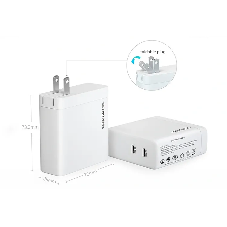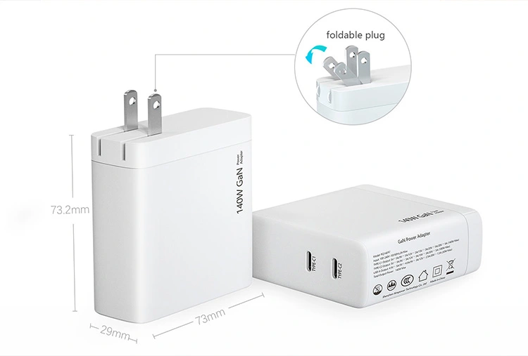 140 Вт, подвійний USB-порт c, зарядний пристрій PD, штекер США, складний Специфікація: