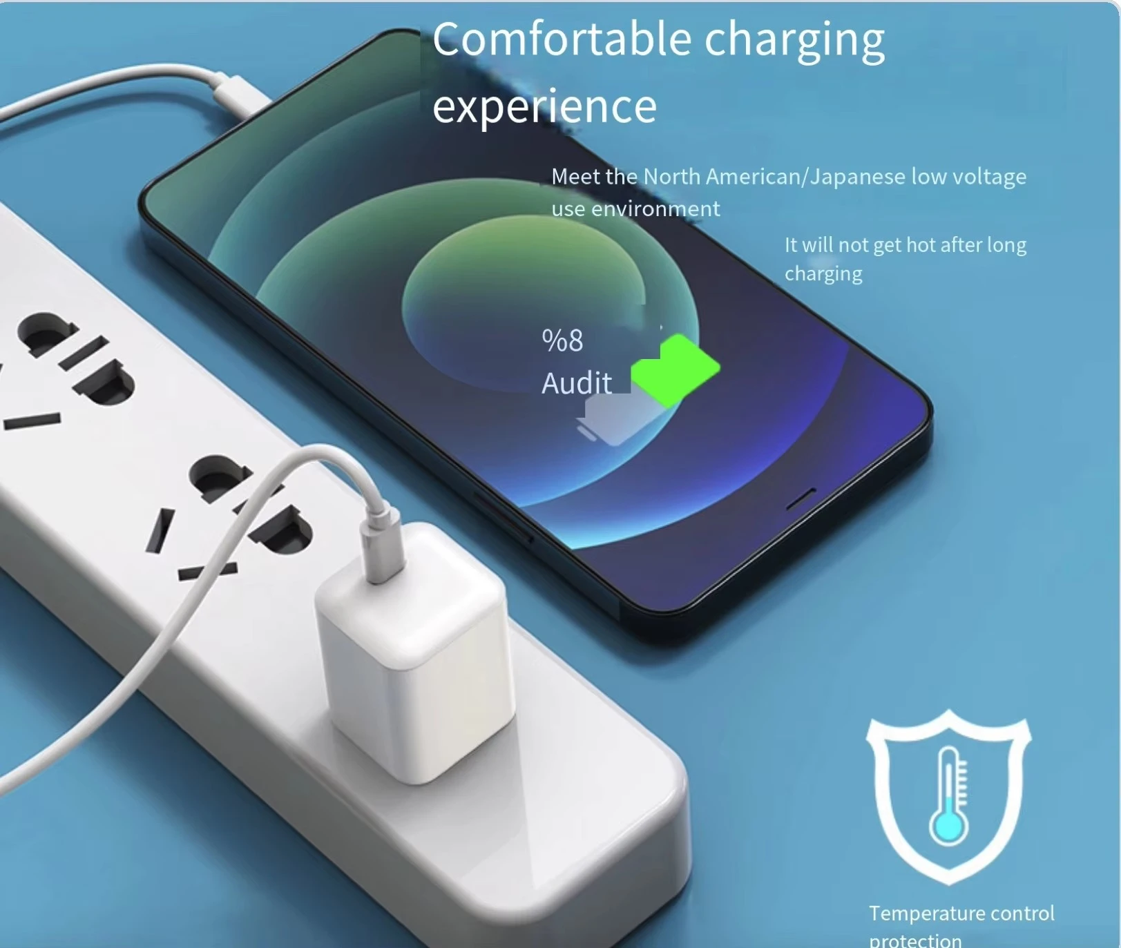 Високоякісний зарядний пристрій 20 Вт Japan Plug Quick Charger STARWELL, який також називають швидким зарядним пристроєм 20 Вт PD, з портами USB-C і Type-C підтримує швидку зарядку для пристроїв iPhone і Android, досягаючи 0-50% за 30 хвилин. Він має кілька засобів захисту, включаючи перевантаження по струму, перенапругу та коротке замикання, що забезпечує безпечну та надійну роботу. Виготовлений із вогнестійкого матеріалу ПК, він відповідає сертифікатам CE та ETL, забезпечуючи відповідність стандартам безпеки ЄС та покращуючи доступ до ринку.