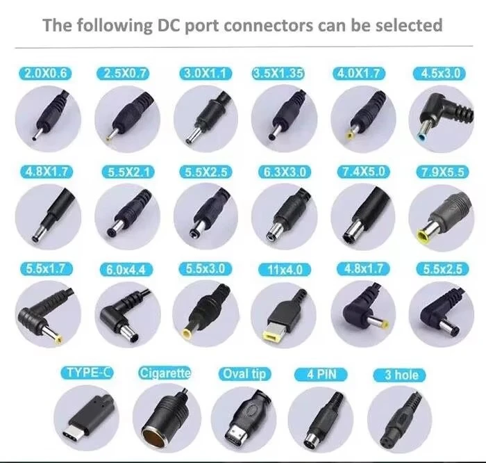 3. Сумісність роз’єму: переконайтеся, що вихідний штекер постійного струму адаптера має правильну полярність (часто позитивну по центру) та фізичний розмір (наприклад, 5,5 мм x 2,1 мм) для надійного підключення до гнізда живлення вашого пристрою.