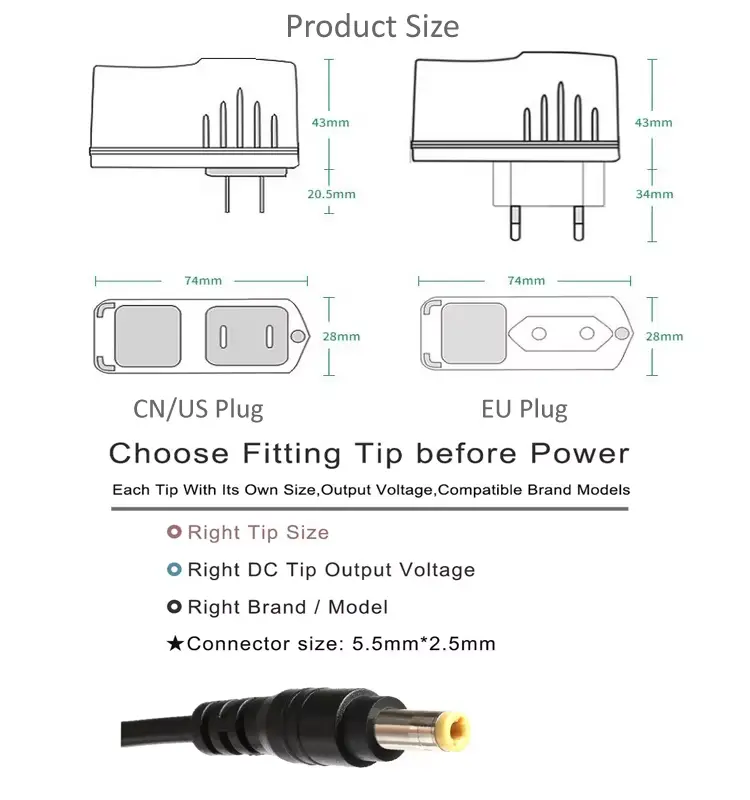 Високоякісний адаптер живлення 24 Вт пропонує китайський виробник Starwell. Наш цей адаптер має різновиди штекерів, наприклад штекери США, Великобританії, ЄС та Австралії.