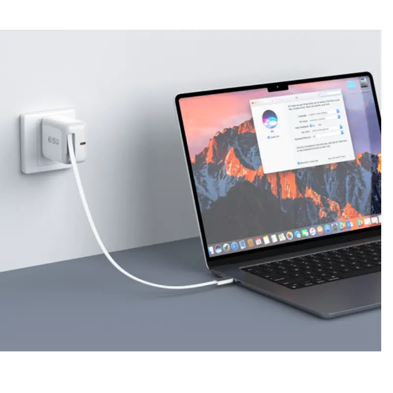 Високошвидкісна подача живлення 65 Вт: забезпечує швидке заряджання ноутбуків, планшетів і смартфонів за допомогою передової технології PD 3.0, заряджаючи MacBook Pro до 50% всього за 45 хвилин.