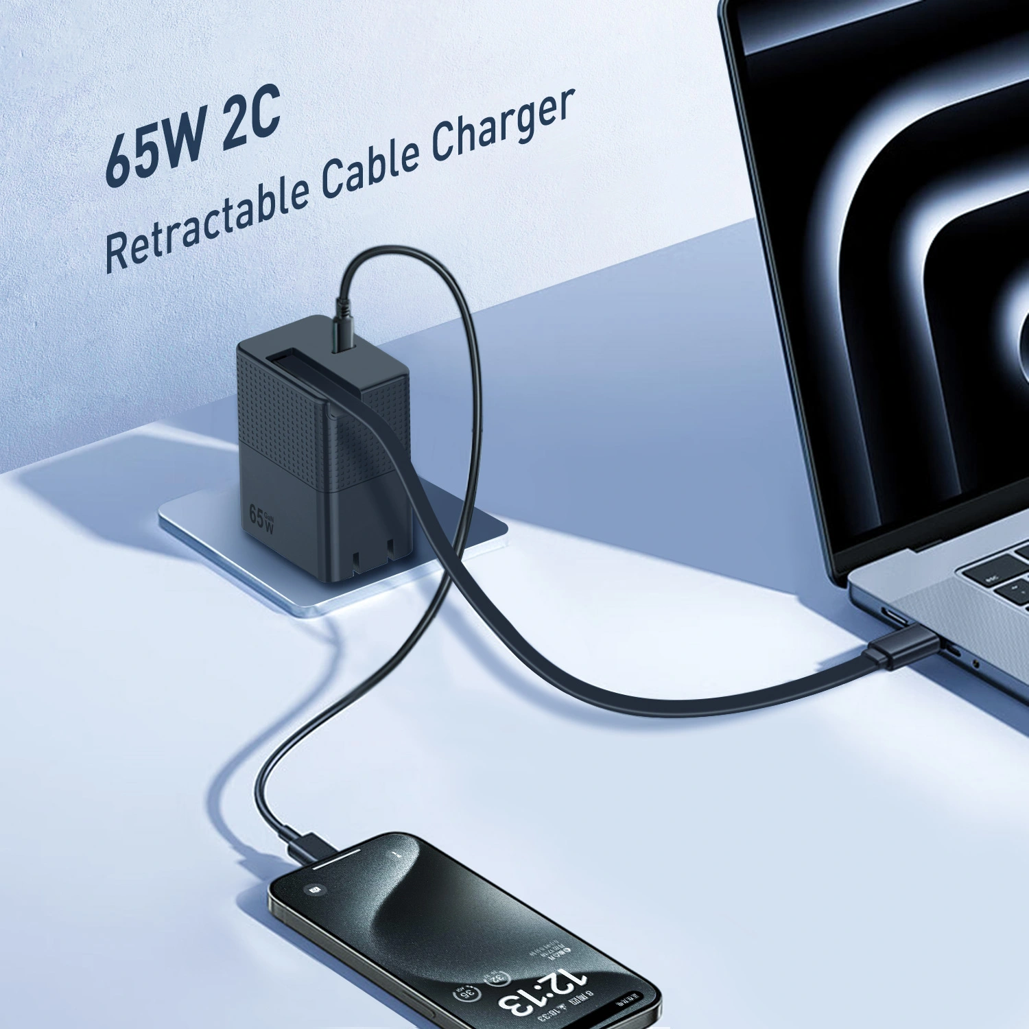 Зарядний пристрій PD потужністю 65 Вт із тягучим кабелем USB c |