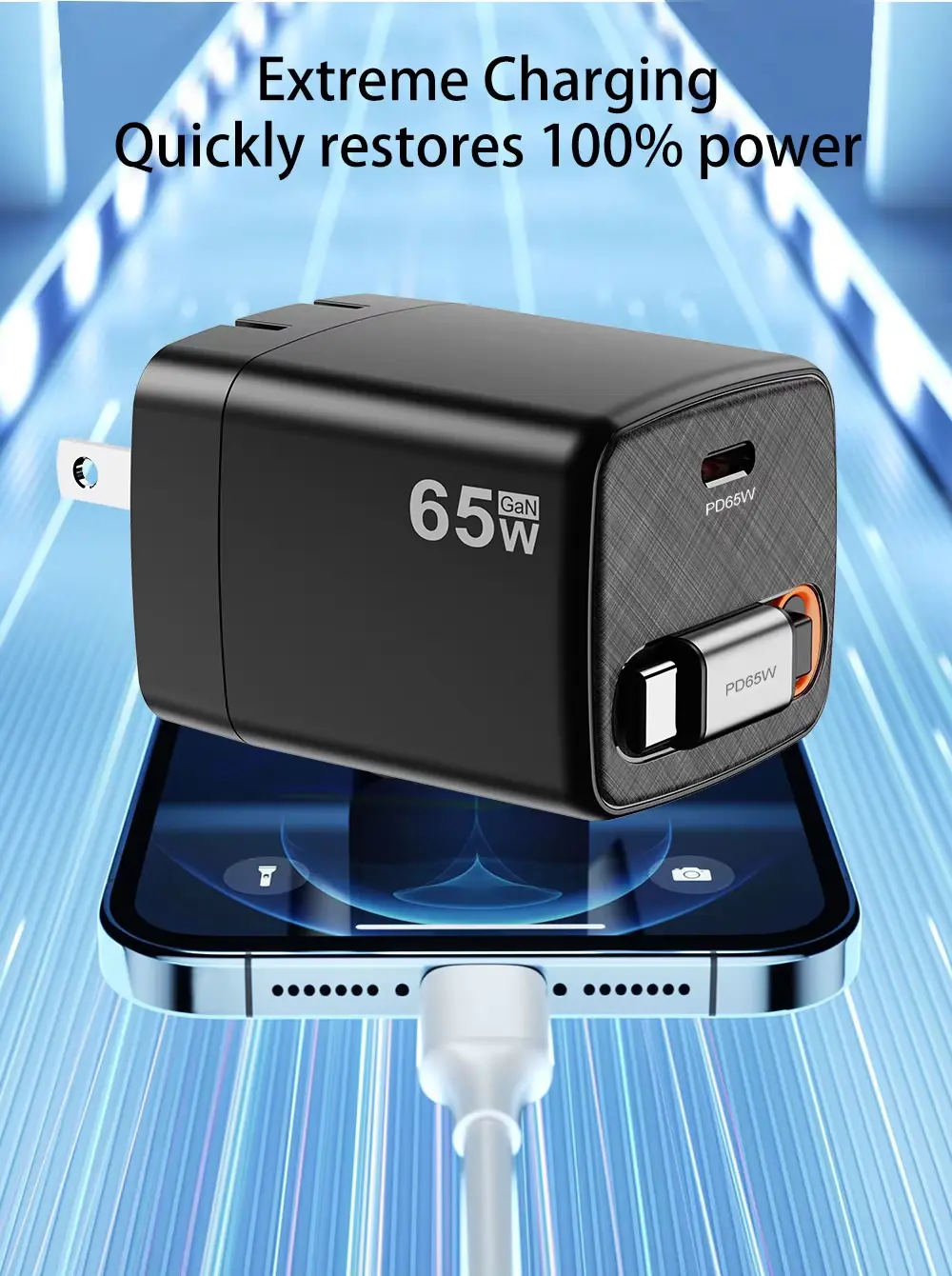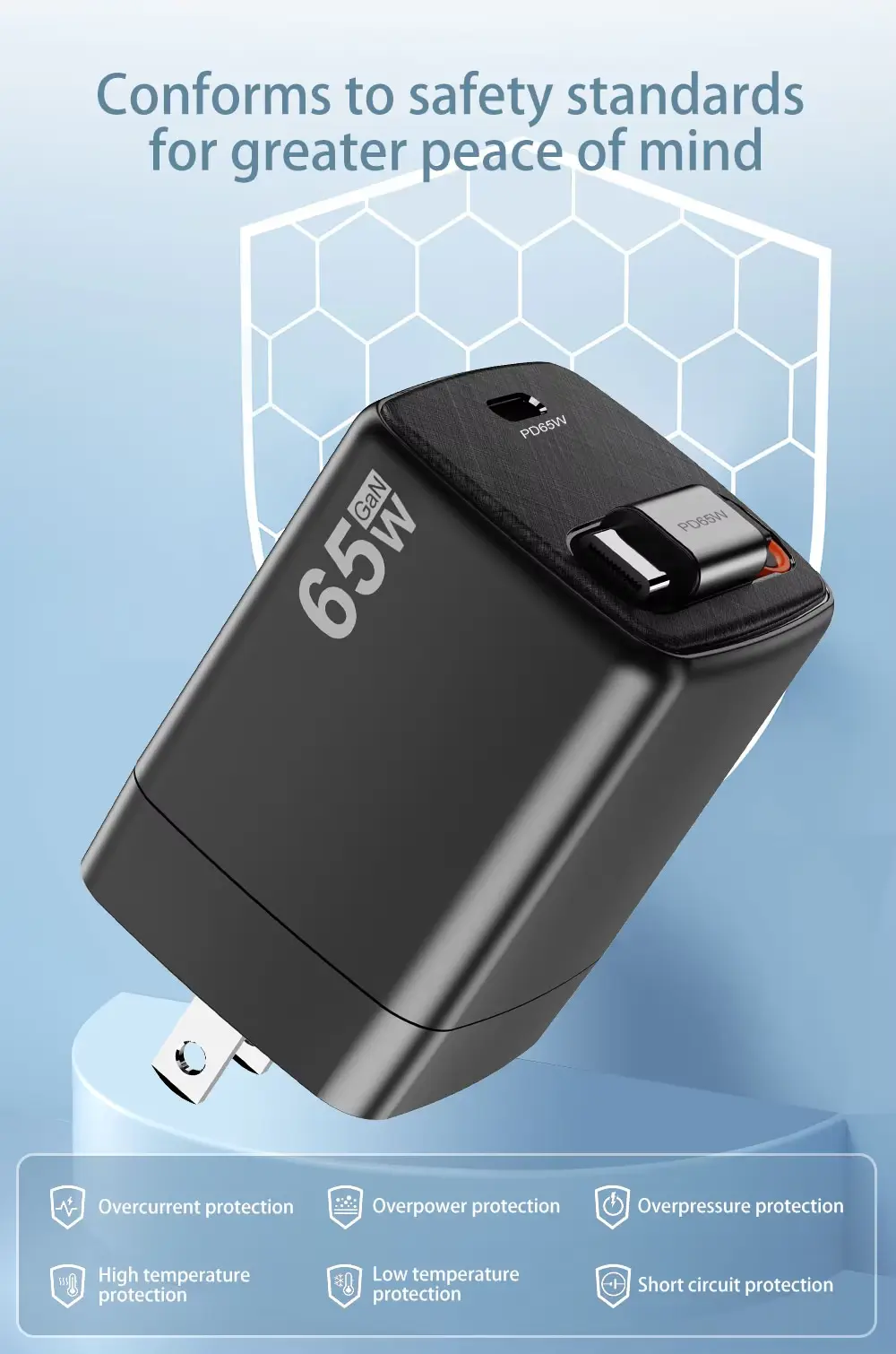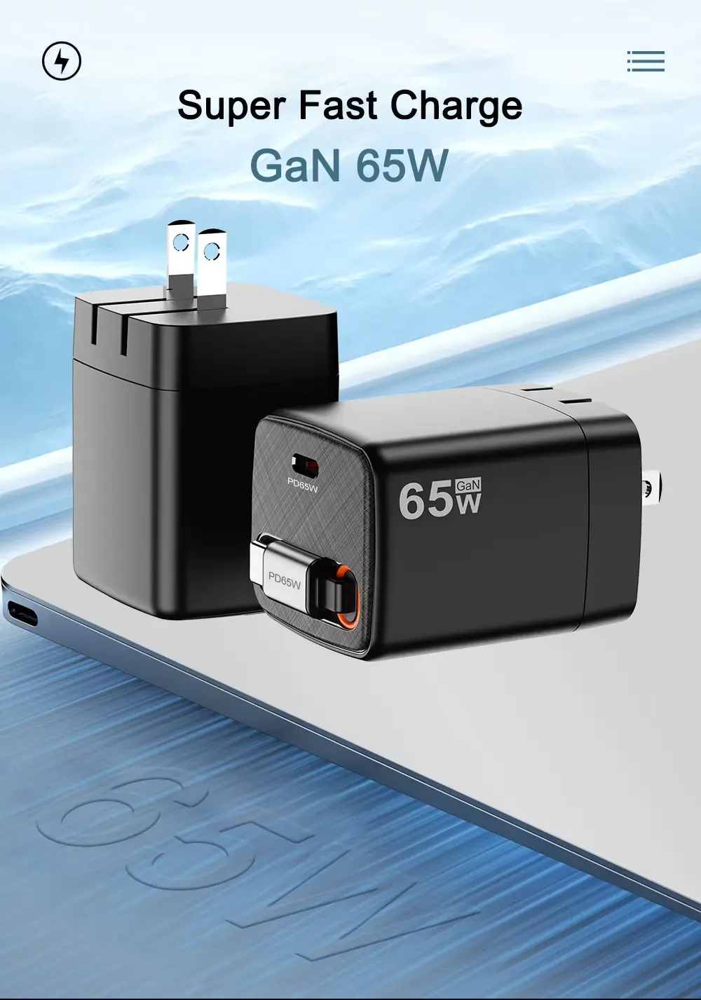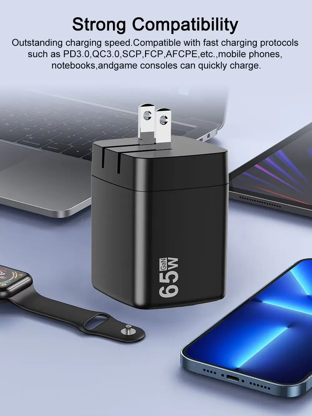 Настроюваний логотип Mini 65W PD Gan USB C Зарядний пристрій Складана американська розетка USB Дорожній адаптер Зарядний пристрій для телефону |
