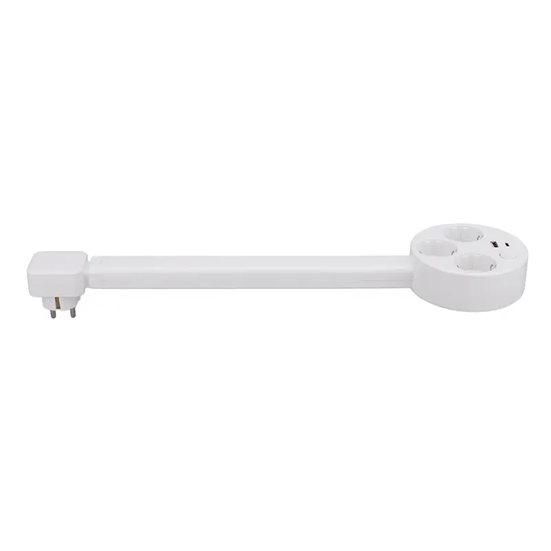 Перетворіть одну самотню розетку ЄС на компактну розетку на 5 розеток. Розсувна висувна конструкція дає змогу додавати штекери, не блокуючи сусідні розетки, а вбудована захисна шторка та захист від перевантаження забезпечують безпеку пристроїв і вашої родини. Його тонкий профіль, що облягає стіну, зникає за столами, тумбочками чи кухонними прилавками, забезпечуючи чисте живлення 230 В без стрибків напруги саме там, де вам це потрібно. Ні гвинтів, ні кабелів — просто підключіть, подовжте та ввімкніть.