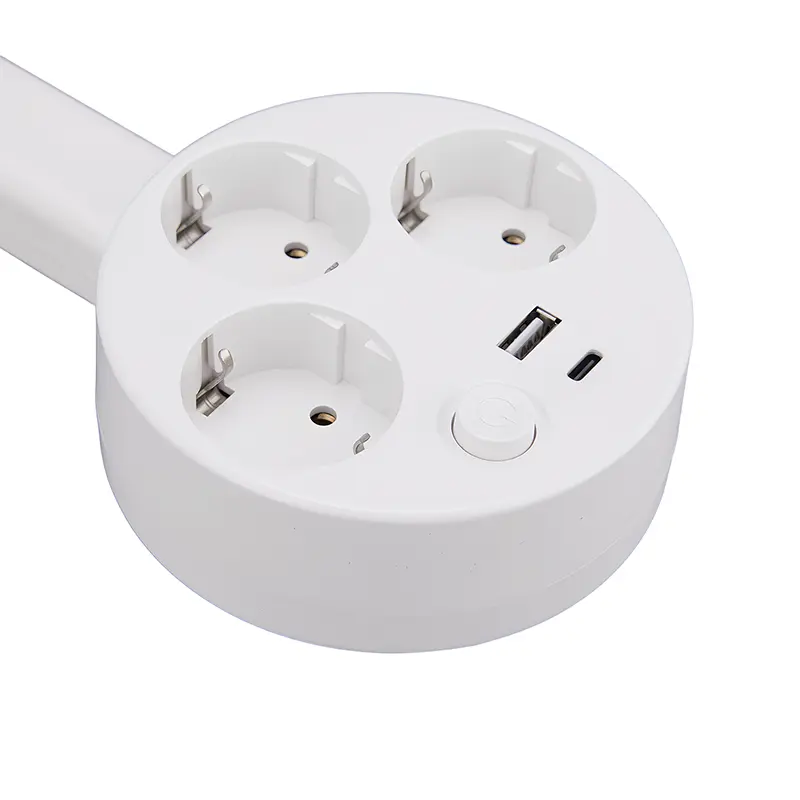 Цей компактний, але повністю функціональний подовжувач настінної розетки ЄС має три стандартні розетки ЄС, а також один порт USB-C і один порт USB-A, що робить його ідеальним для різних налаштувань. Це чудова зарядна станція для вашого офісу, гуртожитку, пральні чи будь-якого приміщення з обмеженою кількістю розеток.